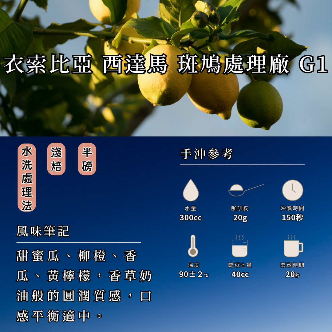 衣索比亞 西達馬 斑鳩處理廠 濾掛咖啡 水洗處理法 G1